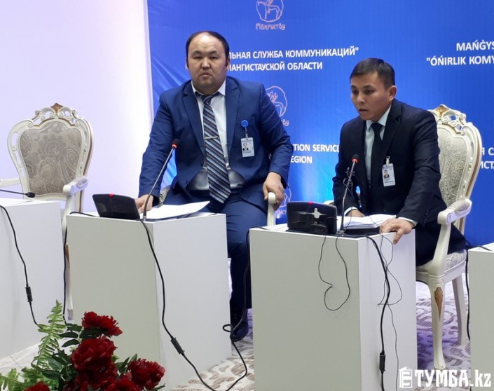 Нурбол Долдашев и Нурбол Окуов на брифинге в Региональной службе коммуникаций. © Tumba.kz