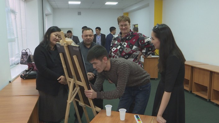 "Мы рисуем трех мужчин в пиджаках, это государственные служащие. У одного купюра на глазах - это говорит о том, что он не хочет видеть в стране коррупцию, у второго в ушах две купюры, это означает, что он не хочет слышать про взятку, и рот у него тоже закрыт купюрой - то есть он не будет говорить о взятке", - пояснила свой рисунок участница акции Самал Ануарбекова.