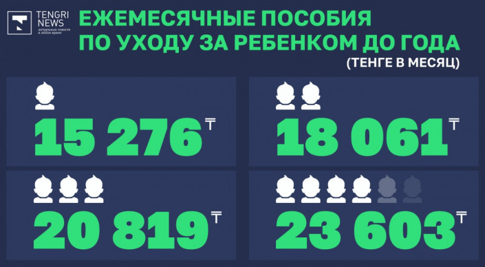 - Единовременное пособие по случаю рождения ребенка станет больше. За первого, второго и третьего ребенка женщины получат до 100 776 тенге, за четвертого - до 167 076 тенге.