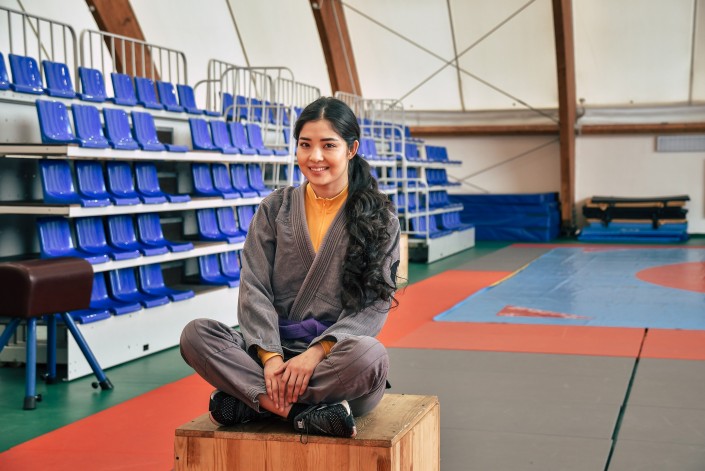 Молдир Менкенбаева учится на третьем курсе Назарбаев Университета по специальности Computer science. Девушка всегда увлекалась любительским спортом, но серьезно заниматься бразильским джиу-джитсу начала в 2014 году. Если есть желание, то можно успевать все.