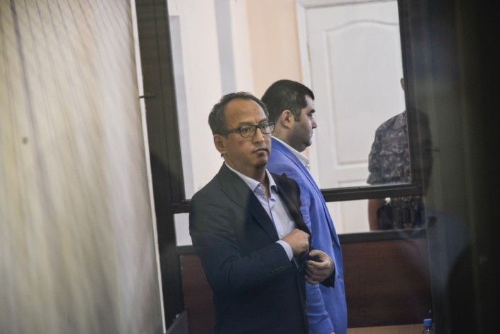 Арман Абильтаев (в синем костюме) до начала итогового заседания молча наблюдает за происходящим. Фото Tengrinews.kz©