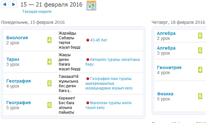 Расписание уроков. Фото с сайта kundelik.kz