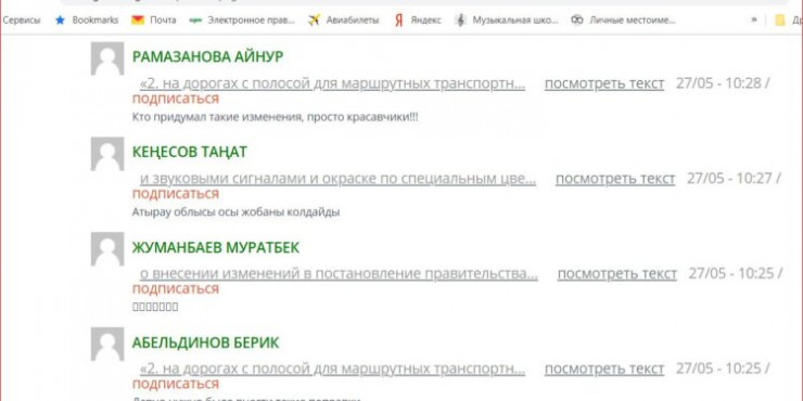 Сайт eGov, где идет обсуждение постановления о допуске автомобилистов на полосы для общественного транспорта (Bus Lane) вне часов пик, заполонили боты, которые массово пишут одобрительные комментарии, чтобы заглушить недовольство настоящих пользователей. Об этом пишет издание "Литер", передает Tengrinews.kz.
