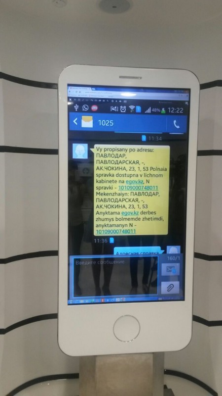 В перспективе можно будет получать некоторые услуги даже с самого простого мобильного телефона, на котором нет Интернета, и не устанавливаются приложения. Пользователю достаточно будет отправить SMS и подписать записанной на SIM-карту ЭЦП. В ответ ему придет сообщение с результатом услуги и уникальным кодом справки. Справка поступит в личный кабинет на портале электронного правительства. Это, по словам Исабековой, станет возможным после принятия закона "Об информатизации".