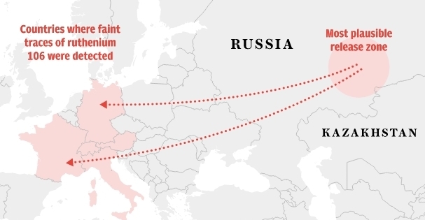 Европейские СМИ - Deutsche WelleThe Telegraph, The Guardian и другие, ссылаясь на отчет Института ядерной и радиационной безопасности Франции, сообщают, что в атмосфере большинства европейских стран обнаружили высокий уровень радиоактивного вещества рутений-106.