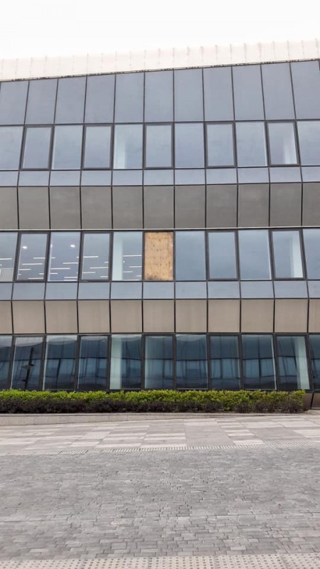 "В целях обеспечения безопасности установлены деревянные заглушки", - говорится в сообщении. В компании просят не делать скоропалительных выводов в отношении внешнего вида окон.
