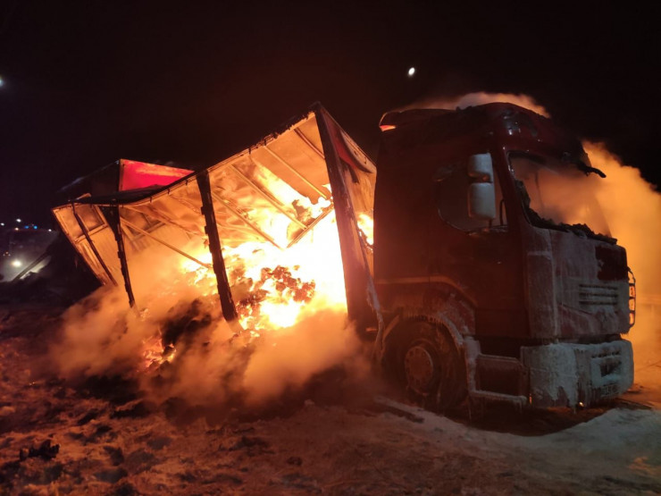 На кадрах видео, снятого очевидцами, видно, что из-за пожара на трассе возникло скопление автомобилей. С места пожара эвакуировали двоих водителей грузовика. Их доставили в пункт обогрева поселка Калкаман. По информации ведомства, пламя удалось полностью ликвидировать в 05.00, жертв и пострадавших нет.