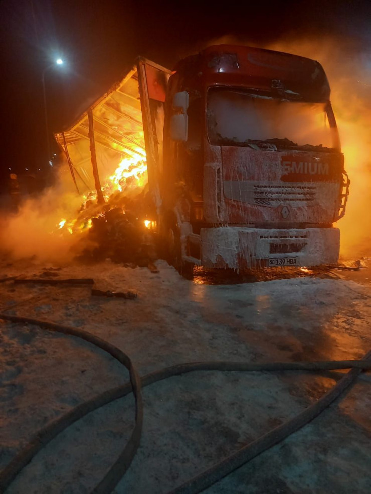 Фура с узбекским трикотажем сгорела на трассе Павлодар - Нур-Султан Фото пресс-службы ДЧС Павлодарской области