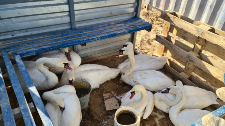 Сначала рабочие увидели двух лебедей, потом всех остальных. Всего было найдено 12 птиц, но, к сожалению, две умерли. Остались пять пар - самки и самцы.
