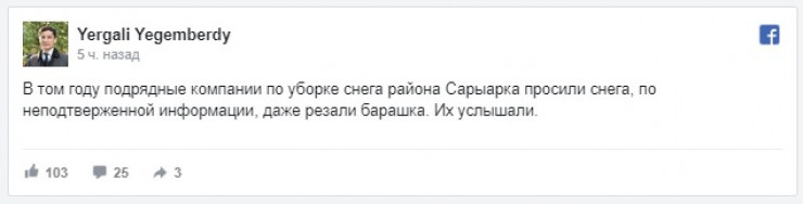 Кто с утра позабавил астанчан, так это аким района Сарыарка Ергали Егемберды в Facebook.