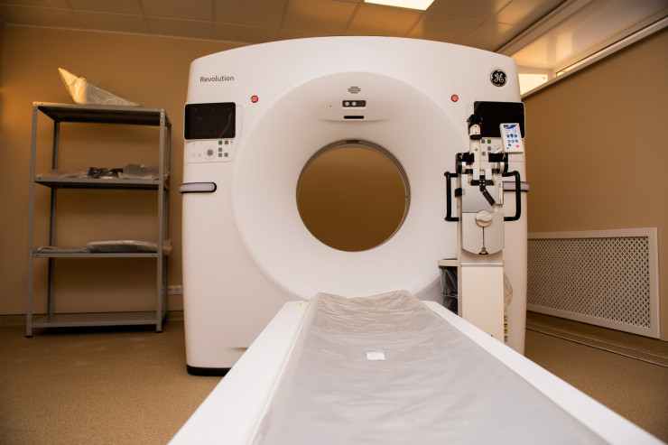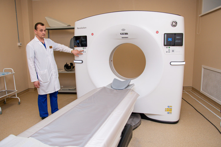 Диагностическое отделение инсультного центра состоит из компьютерного томографа и ангиографа производства General Electric HealthCare. Высокопроизводительный компьютерный томограф имеет низкую лучевую нагрузку и может быть использован для диагностики пациентов с металлическими имплантатами. Благодаря использованию современных решений у врачей появляется возможность выполнять больше исследований за меньшее время и более эффективно управлять потоком пациентов. Ангиограф предназначен для исследований кровеносных сосудов и поддерживает возможность их визуализации под большим углом обзора. В настоящее время все оборудование установлено и протестировано. Медицинский персонал Аулиекольской больницы проходит профессиональное обучение для работы на новых аппаратах.
