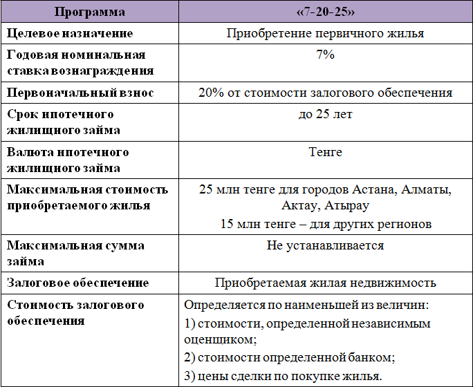 Как ожидается, принимаемые Нацбанком меры по реализации программы "7-20-25" приведут к активизации ипотечного кредитования, обеспечат доступность приобретения жилья для тысяч казахстанцев и в целом окажут мультипликативный эффект на развитие экономики страны. Предполагается, что по результатам реализации программы ипотечный портфель банков увеличится как минимум на один триллион тенге.