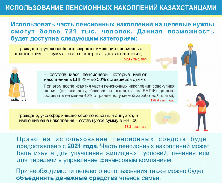 Сообщается, что право на использование части пенсионных накоплений будет предоставлено с 2021 года. Их можно будет потратить на решение жилищного вопроса, оплату лечения для себя и близких, а также для передачи в управление финансовым компаниям.
