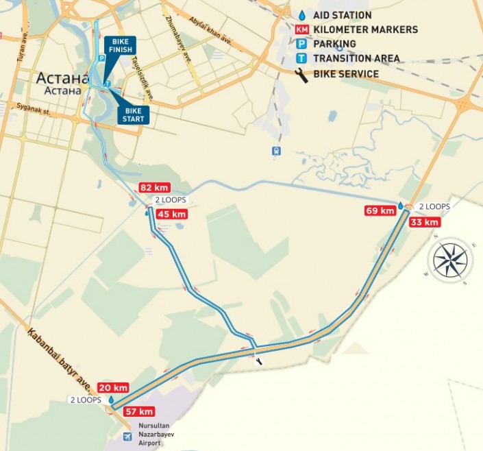 Этап бега длиною 21,1 километра состоит из трех быстрых кругов на территории Triatlon Park Astana.