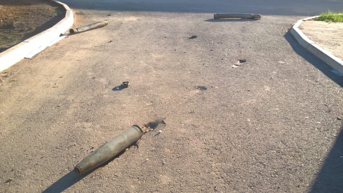 122 миллиметрлік 9М21 жарқыншақты-фугастық зымыранының бөлігі. Отыны жанып кеткен. Соққыдан жарқыншақты фугастық күштен бас бөлігі жұлынып кеткен.