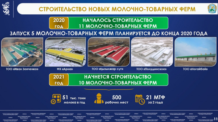 В целом запуск 21 фермы позволит ежегодно производить более 51 тысячи тонн молока и трудоустроить 500 сельских жителей.