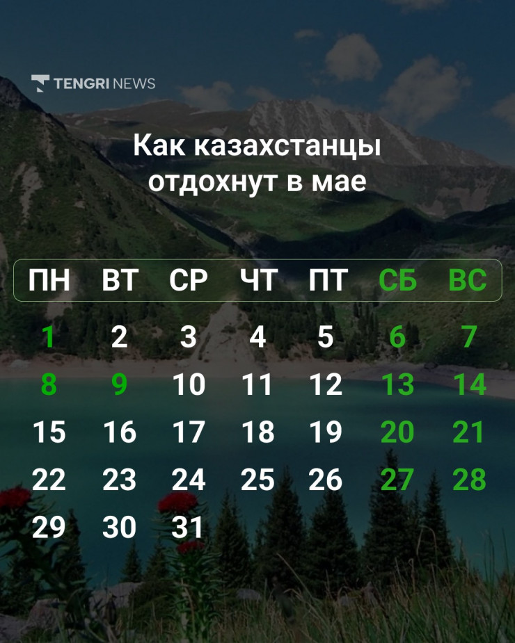 В мае 2023 года казахстанцы отметят три больших праздника. Tengrinews.kz подготовил удобный календарь, чтобы заранее распланировать длинные выходные.