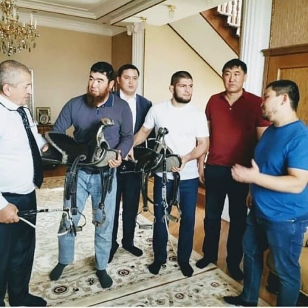 Чемпиону UFC Хабибу Нурмагомедову и его отцу Абдулманапу подарили седла, сделанные руками мастера Мейрхана Данышпанова из Бактыбайского сельского округа Ескельдинского района Алматинской области, пишет газета "Огни Алатау".