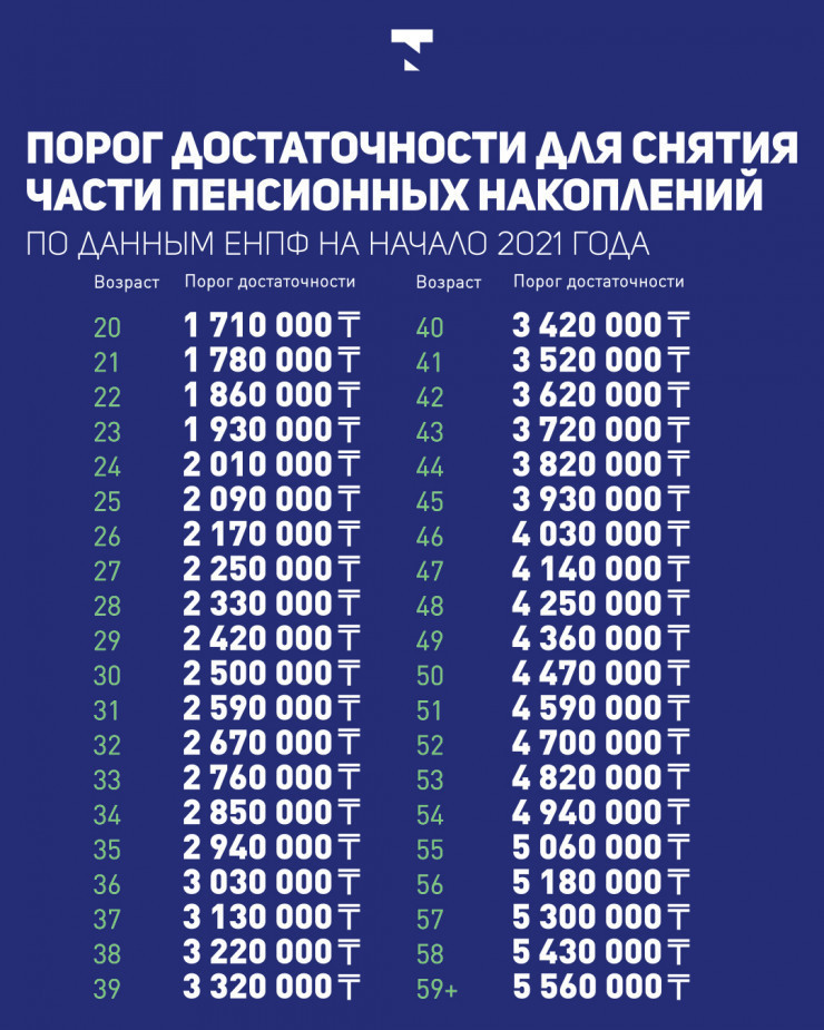 Пенсионные накопления будут доступны для казахстанцев, у которых есть определенная сумма на счете. Порог достаточности зависит от возраста вкладчика.