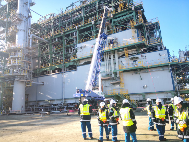 После комментариев о высокотехнологичных объектах Бауыржан Аманбай рассказывает о том, как давно он здесь работает: "Начинал на заводе КТЛ с позиции оператора установки еще 30 лет назад, со дня основания ТШО, поднялся до начальника эксплуатации завода второго поколения, а с 2020 года работаю на проекте ПБР начальником эксплуатации завода третьего поколения".