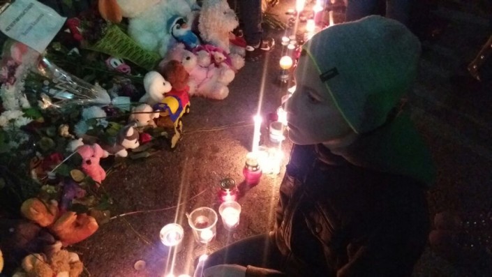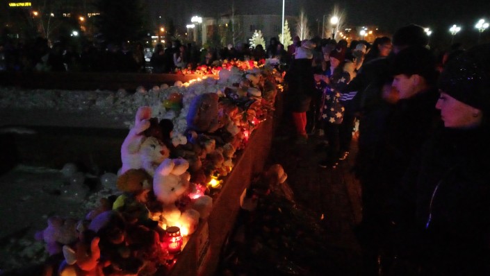 На акции было много детей. Но никто не шумел и не бегал. Даже малыши подолгу смотрели на свечи и шары и никто не плакал. Люди приходили семьями. Многие только сегодня рассказали детям о том, что случилось с их сверстниками в Кемерово.