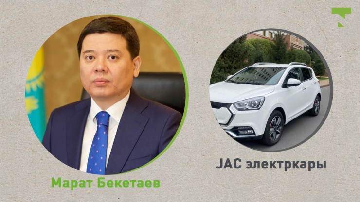 Министрлер арасында бірінші болып әділет министрі Марат Бекетаев қызметтік көлігін электркарға ауыстырды. Әділет министрлігі қыркүйекте Tengrinews.kz сауалхатына берген жауабында мұның себебі қызметтік көлікті ұстауға кететін қаражатты үнемдеу екенін жазды. Бекетаевтың жаңа көлігі - JAC электркары. JAС электркарының бағасы - 15 миллион теңге.