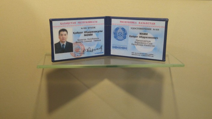 В музее хранится оригинал удостоверения бывшего председателя Верховного суда РК Кайрата Мами.
