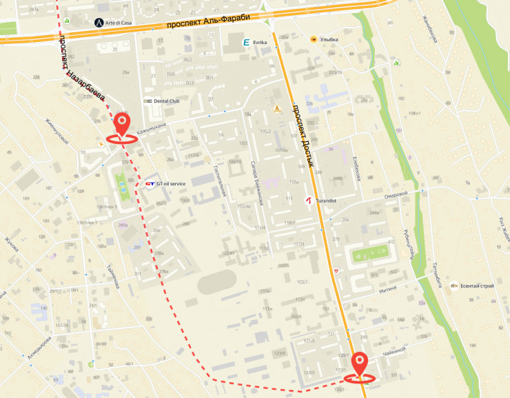 Отметим, что в городе планируют пробить еще две улицы, это Саина и проспект Назарбаева. Последнюю хотят протянуть выше проспекта Аль-Фараби от улицы Кажымукана до проспекта Достык в районе улицы Чайкиной. По плану строительные работы начнутся в 2021 году и закончатся в 2022-м.