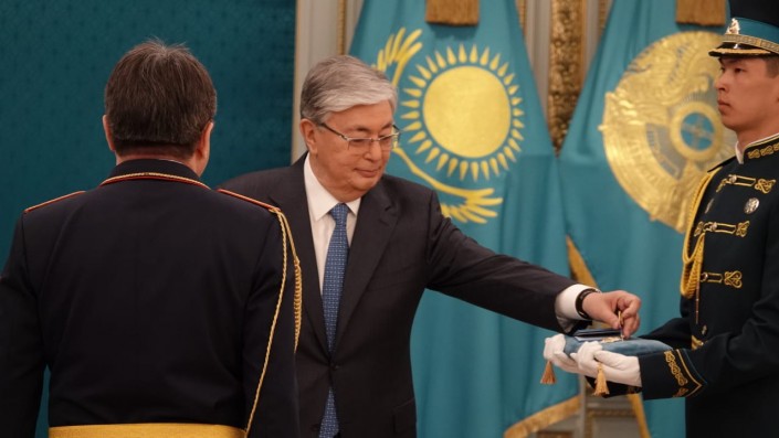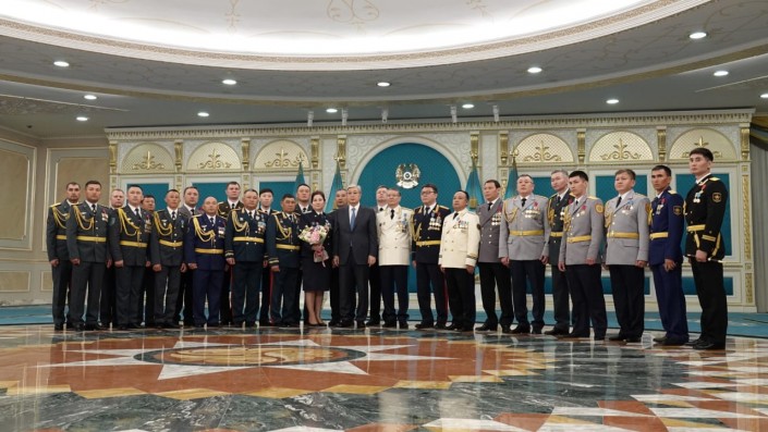 В Акорде прошла церемонии вручения специальных воинских званий и государственных наград Президентом Казахстана Касым-Жомартом Токаевым, передает корреспондент Tengrinews.kz. Он наградил почетными орденами и медалями сотрудников КНБ, прокуратуры, полицейских, военных и пожарных.
