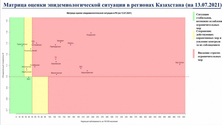 Согласно матрице оценки эпидемиологической ситуации в регионах Казахстана на 13 июля, Северо-Казахстанская область перешла из "желтой" в "красную" зону.