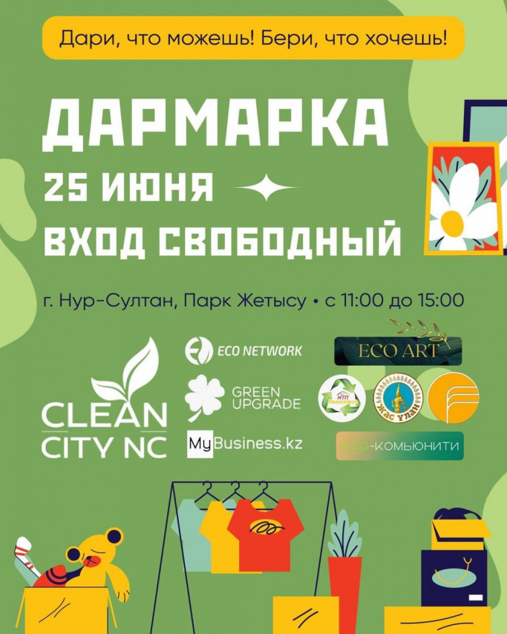Дармарка - это free-market в парке "Жетысу", куда вы можете принести свои вещи в чистом хорошем состоянии, которые вы уже не используете, и обменять на то, что может вам пригодиться. На встрече пройдет мастер-класс по раздельному сбору отходов, стилисты покажут, как составлять капсулу для гардероба, желающие смогут принять участие в настольной игре Eco Alem. Также будут работать пункты приема вторичного сырья, пройдут эковикторина и розыгрыши призов.