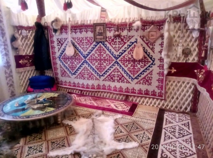Недвижимость состоит из пяти комнат, одна из которых оформлена в виде юрты. В апартаментах, помимо шанырака и кереге, можно заметить текемет, сандык, корпе, садак, камшы и другие элементы быта.
