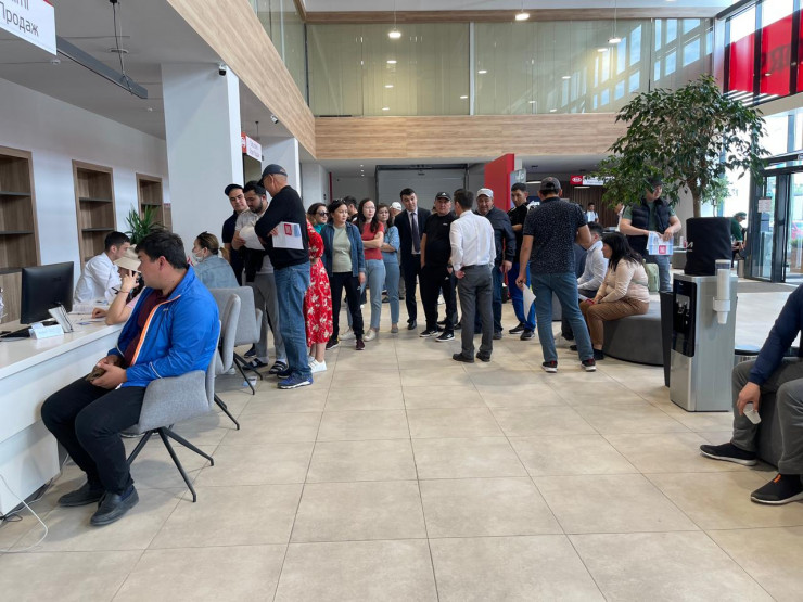 Горожане с самого утра собираются в автосалонах. В салонах на проспекте Туран очереди продолжаются на улице. Многие возмущаются неясными условиями программы.