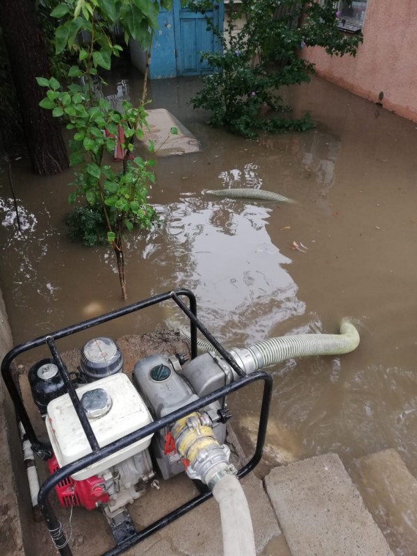 Сообщается, что в результате прошедшего дождя в разных районах города произошло подтопление частных жилых домов, дворовых, подвальных помещений и транспортной развязки.