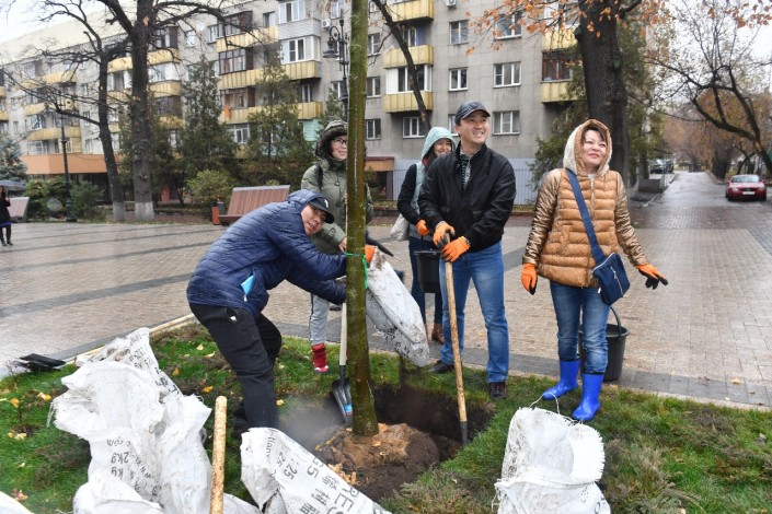 4 ноября 2017 года аким Алматы Бауыржан Байбек, депутаты маслихата, представители общественности и сотрудники коммунальных предприятий города посадили деревья на реконструированных с приоритетом для пешеходов улицах Панфилова, Жибек жолы, Кабанбай батыра, Гоголя и площади "Астана".