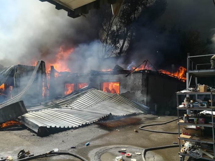 "17 сентября в 11:57 на пульт "101" поступило сообщение о пожаре в Жетысуском районе. Силы и средства направлены по повышенному номеру. По улице Ратушного, 84 А открытым пламенем горел мебельный цех с угрозой распространения на рядом расположенный производственный цех. На месте задействованы 20 единиц техники, 60 человек личного состава, 4 единицы поливомоечных машин, 2 эвакуатора, полиция - 20 человек, 3 единицы техники. Департаментом полиции произведено оцепление", - говорится в сообщении ДЧС.