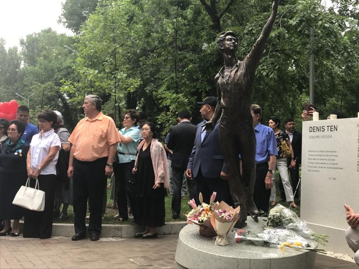 "Мы выражаем благодарность Оксане Алексеевне, потому что каждая деталь, каждый штрих, в целом вся работа была проведена под ее руководством. В целом общество и тем более подрастающее поколение должны помнить, мы не должны забывать, каким был Денис - его победы и светлый образ. Это все должно вдохновлять на новые победы подрастающее поколение казахстанцев. Именно с этой целью мы сегодня собрались открывать памятник", - сказал Арман Кырыкбаев.