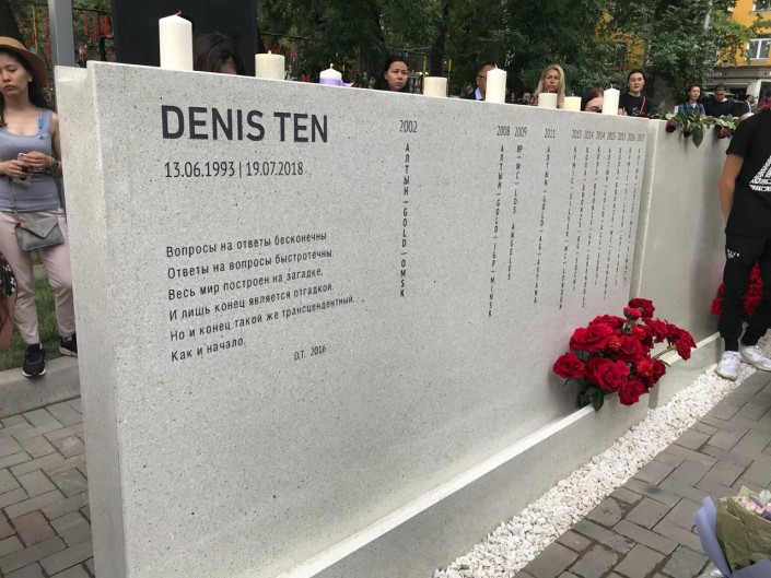 В Алматы открыли мемориал погибшему казахстанскому фигуристу, бронзовому призеру Олимпиады-2014 в Сочи Денису Тену, передает корреспондент Tengrinews.kz. Памятник установлен на месте его гибели на пересечении улиц Байсеитовой и Курмангазы.