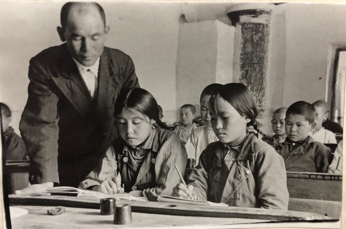Школа в колхозе Алгабас, урок русского языка в местной школе. 1939 год.
