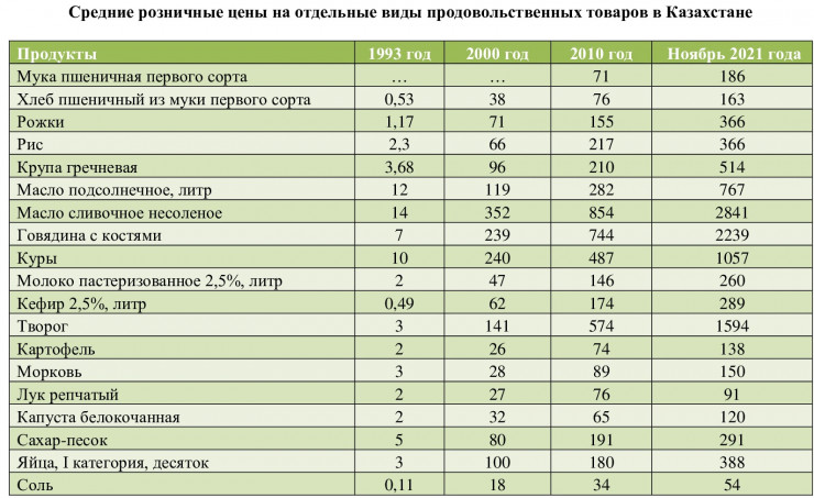 В целом продовольственная корзина за первые десять лет независимости подорожала примерно в 91 раз.