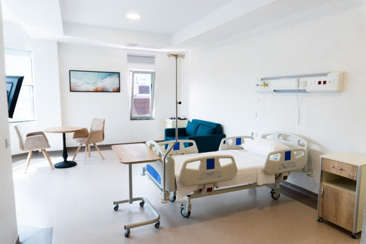 Просторные одноместные палаты пациентов с комфортной мебелью и специальной функциональной кроватью с регулируемыми подлокотниками и изголовьем выглядят словно отельные номера.