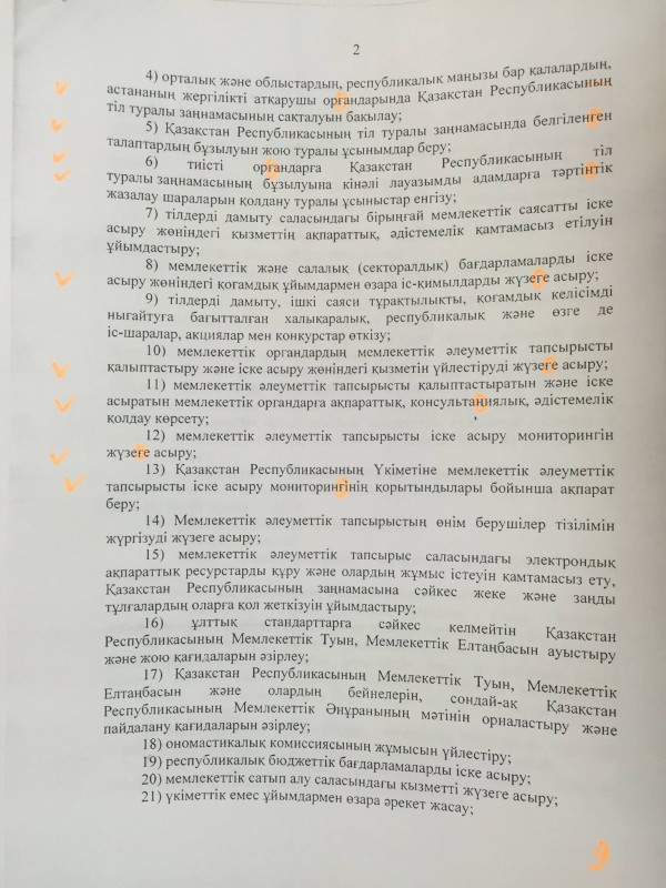 "Там чисто техническая ошибка. В оригинале документа этих ошибок нету. Потому что там вкладывается в компьютер, и когда он распечатывается, буква Қ идет без хвостика, как К. Буква Ә как А отображается. В программе "Адилет", к сожалению, такое чисто казахское искажение дает. Там с компьютерной программой проблемы скорее всего. Мне сейчас принесли оригинал, в нем с тем выставленным "Адилетом" документом различия есть, потому что когда программа читает, буквы искажаются. Я сам сторонник того, чтобы орфография и все поддерживалось", - сказал Арыстанбек Мухамедиулы, отметив, что в министерстве внимательно следят за чистотой языка. "Это не наша программа. "Адилет" - это общая программа для всех госорганов, где любые правовые решения обязаны публиковать. Мы сейчас будем обращаться к обладателям программы "Адилет", чтобы они усовершенствовали свою программу", - отметил Мухамедиулы.
