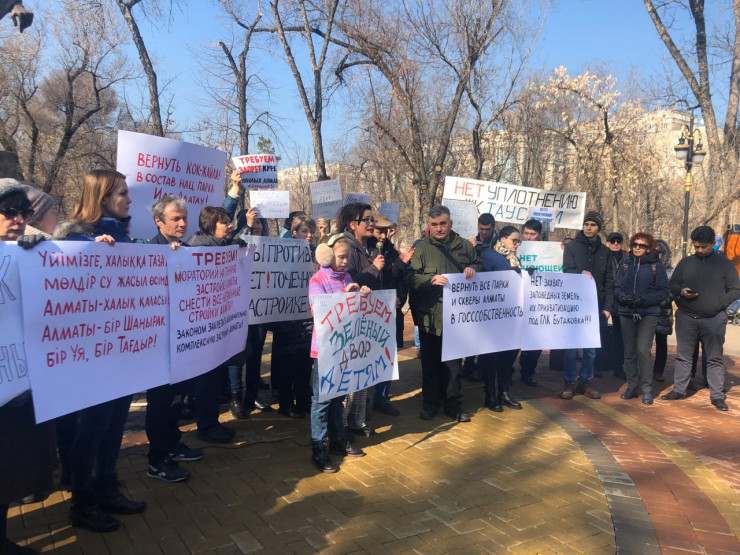 "То, что происходит в Алматы, - это не просто точечное строительство, из-за которого нарушается поток воздуха. Это нарушение наших конституционных прав. В частности, мы уже много лет не можем добиться ответа на вопрос: "Кто снес детский сад № 45?" Нас не слышат! В целевом назначении (на месте детского сада. - Примечание автора) числилось строительство многоэтажного жилого дома с детским садом. По факту строят четыре жилых дома, а детский сад заменили на центр для детей", - рассказал один из митингующих.