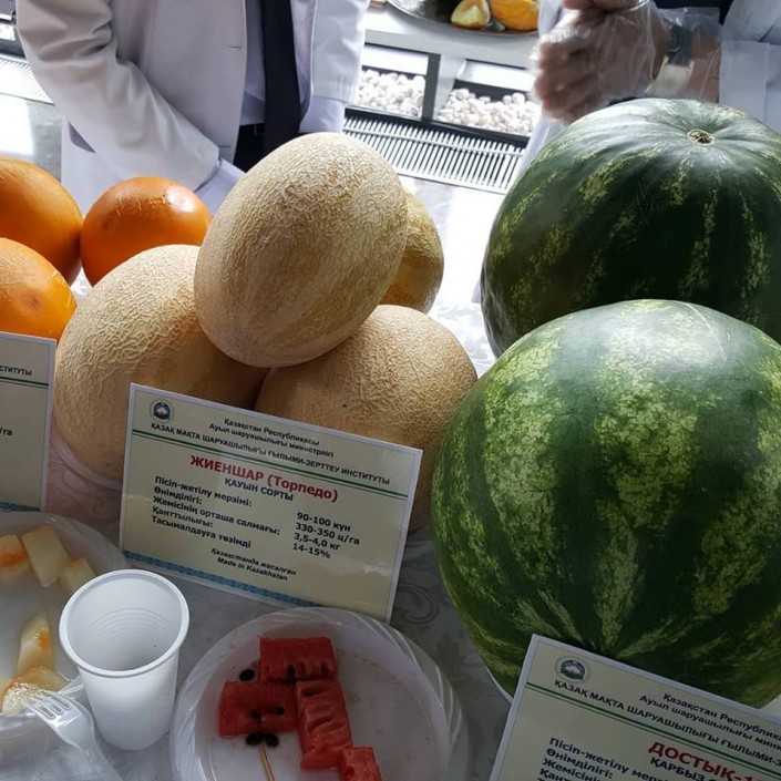 На выставку из южных регионов Казахстана привезли арбузы, дыни, клубнику, черешню, яблоки. Выставка проходила в послеобеденное время. Тем, кто не успел пообедать, можно было угоститься уже запаренной лапшой быстрого приготовления, баурсаками, кусочками казахстанского сыра. А вот фруктами не угощали, даже продать организаторы не захотели - сказали, что кому-то подарят.