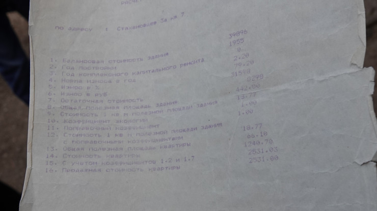 Ее соседка показывает активистам бумагу за 1992 год, подписанную Атырауской городской администрацией. В ней указан износ здания – 79 процентов. Это состояние, которое зафиксировали 28 лет назад.