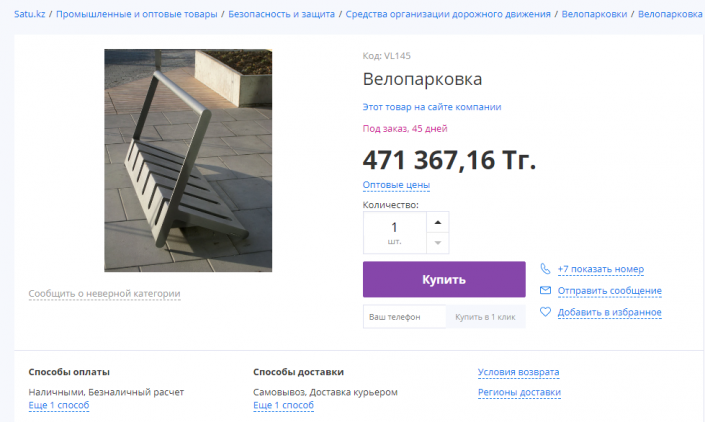 Отметим, что на сайте satu.kz похожая велопарковка стоит чуть более 471 тысячи тенге.