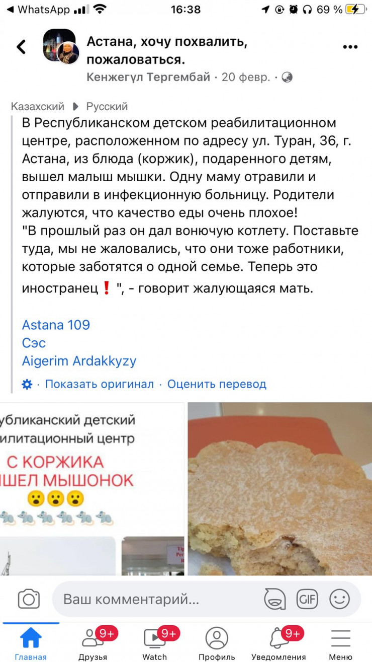 Напомним, об инциденте в Национальном республиканском детском реабилитационном центре сообщила журналист Кенжегүл Тергембай в группе "Астана, хочу похвалить, пожаловаться" в Facebook.