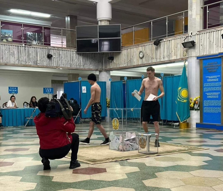 Трое подтянутых молодых людей и девушка, одетых так, словно они только что с пляжа, появились на избирательном участке №137 во Дворце школьников, передает Tengrinews.kz.
