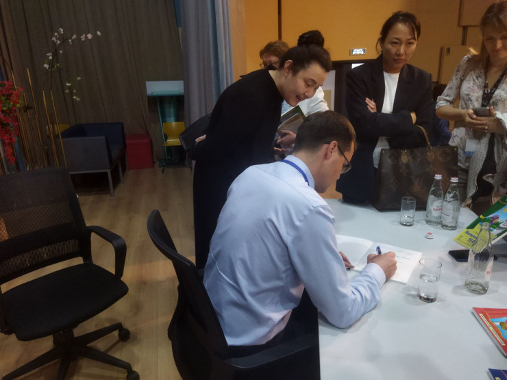 После лекции Владимир рассказал нам, что приехал в Казахстан несколько месяцев назад, чтобы помочь в издании на русском и казахском языке учебников математики, адаптированных под авторскую методику их института. Мы также задали педагогу несколько актуальных вопросов о наших проблемах в сфере образования.