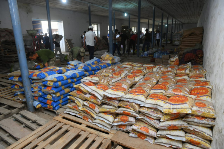 Продукты берут из хранилища, куда поступает гуманитарная помощь из регионов. Так, на сегодня руку помощи протянули Жамбылская область и город Арысь, жители которого год назад и сами нуждались в поддержке.
